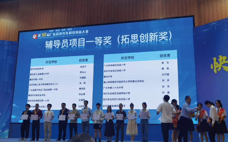 广东拓思软件科学园有限公司积极布局智慧教育产业,结合科技创新和教育新理念,走在教育行业前沿。本次拓思公司积极参与筹备赛事的各项工作,为大赛设立了“拓思十佳奖”和“拓思创新奖”,并提供奖品支持。闭幕仪式上,广东拓思软件科学园有限公司总经理梁茹,广州乐庚信息科技有限公司副总经理林虹全对十佳优秀科技辅导员(拓思十佳奖)、辅导员项目一等奖(拓思创新奖)进行了颁奖,获奖者在现场兑换奖品。