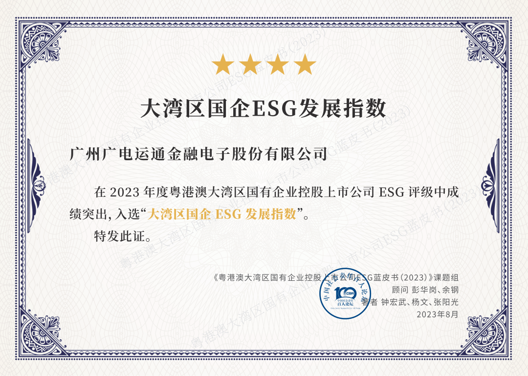 广电运通成功入选“大湾区国企ESG发展指数”榜单