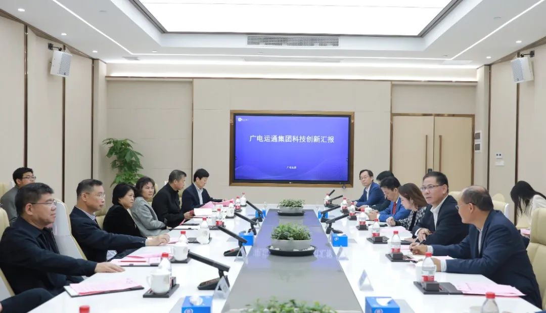 调研组参观了广电运通人工智能创新中心和人工智能公共算力中心,听取企业生产经营情况介绍,从人工智能基础及应用研究、企业发展路径及亮点、科技研发创新、金融科技及城市智能两大主线,与广州数字科技集团、广电运通相关负责人进行沟通交流,深入探讨企业高质量发展经验及创新举措。