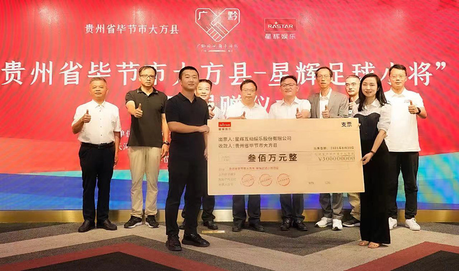 2021年8月,星辉娱乐启动对口帮扶贵州省毕节市大方县的“星辉足球小将”公益项目。三年来,项目累计投入300万元专项基金,涵盖营养餐计划、赛事交流支持、足球训练补贴及奖学金等多元帮扶内容,全方位护航山区青少年健康成长,助力孩子们追逐足球梦想。通过持续三年的精准帮扶,“星辉足球小将”项目成效显著,累计已助力近百名“星辉足球小将”在全国各级别足球赛捧杯,数十名学生通过足球特招进入重点中学。