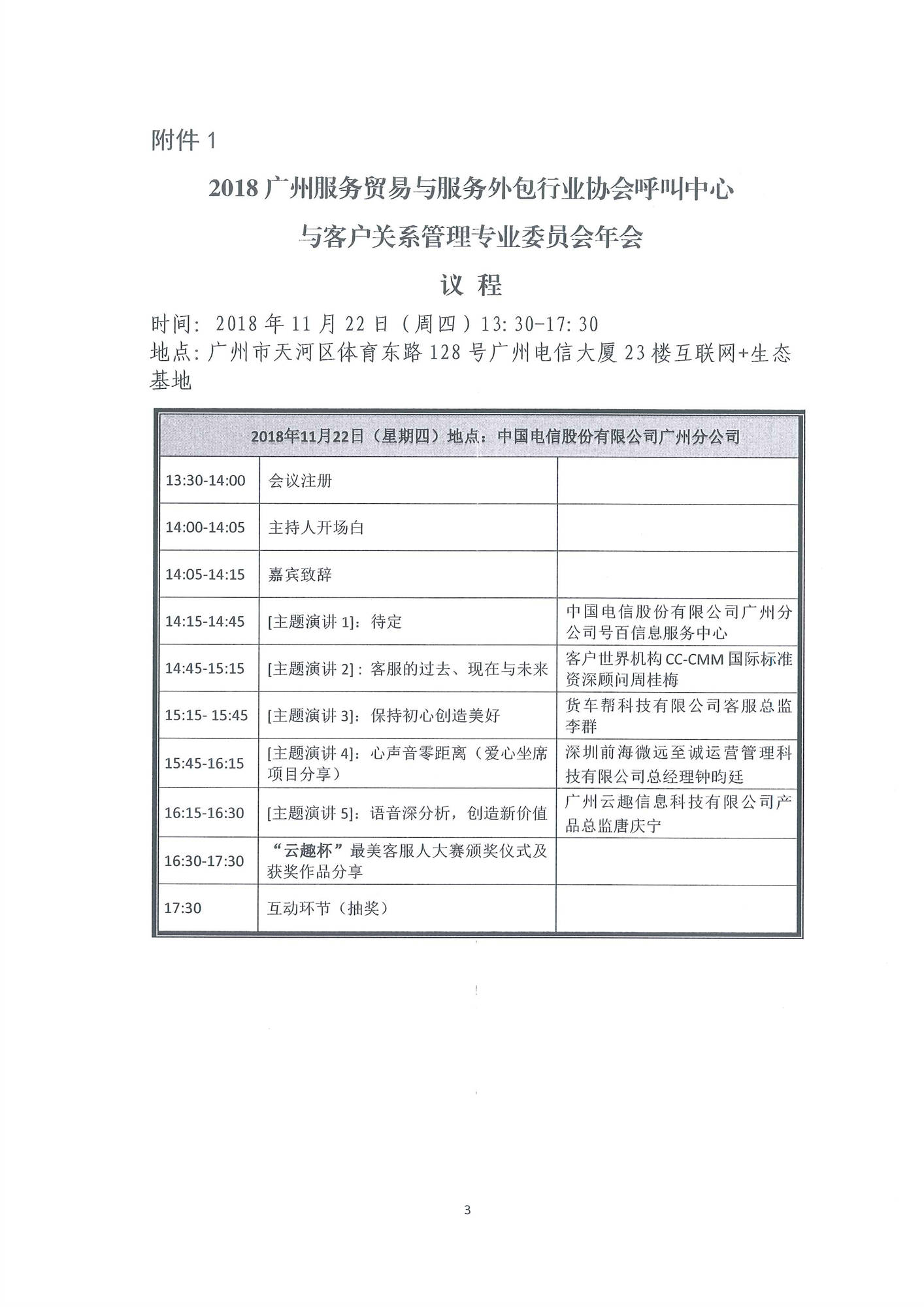 由广东省服务外包产业促进会主办,广州服务贸易与服务外包行业协会呼叫中心与客户关系管理专业委员会、佛山市服务贸易和外包协会承办,中国电信股份有限公司广州分公司和CC-CMM国际标准组织协办的“2018广州服务贸易与服务外包行业协会呼叫中心与客户关系管理专业委员会年会”活动于11月22日在广州市天河区体育东路128号广州电信大厦23楼互联网+生态基地召开。